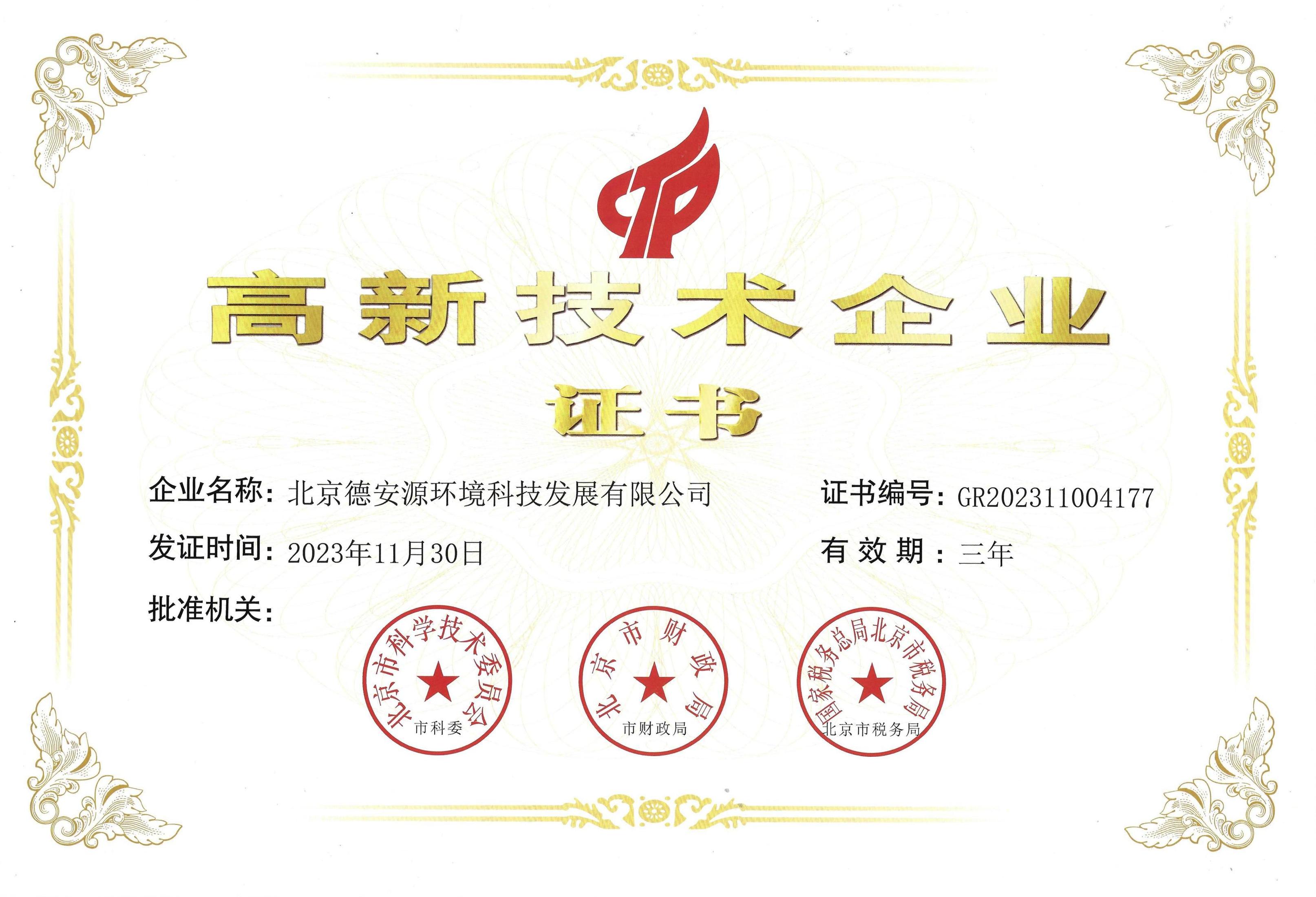 高新技術(shù)企業(yè)證書